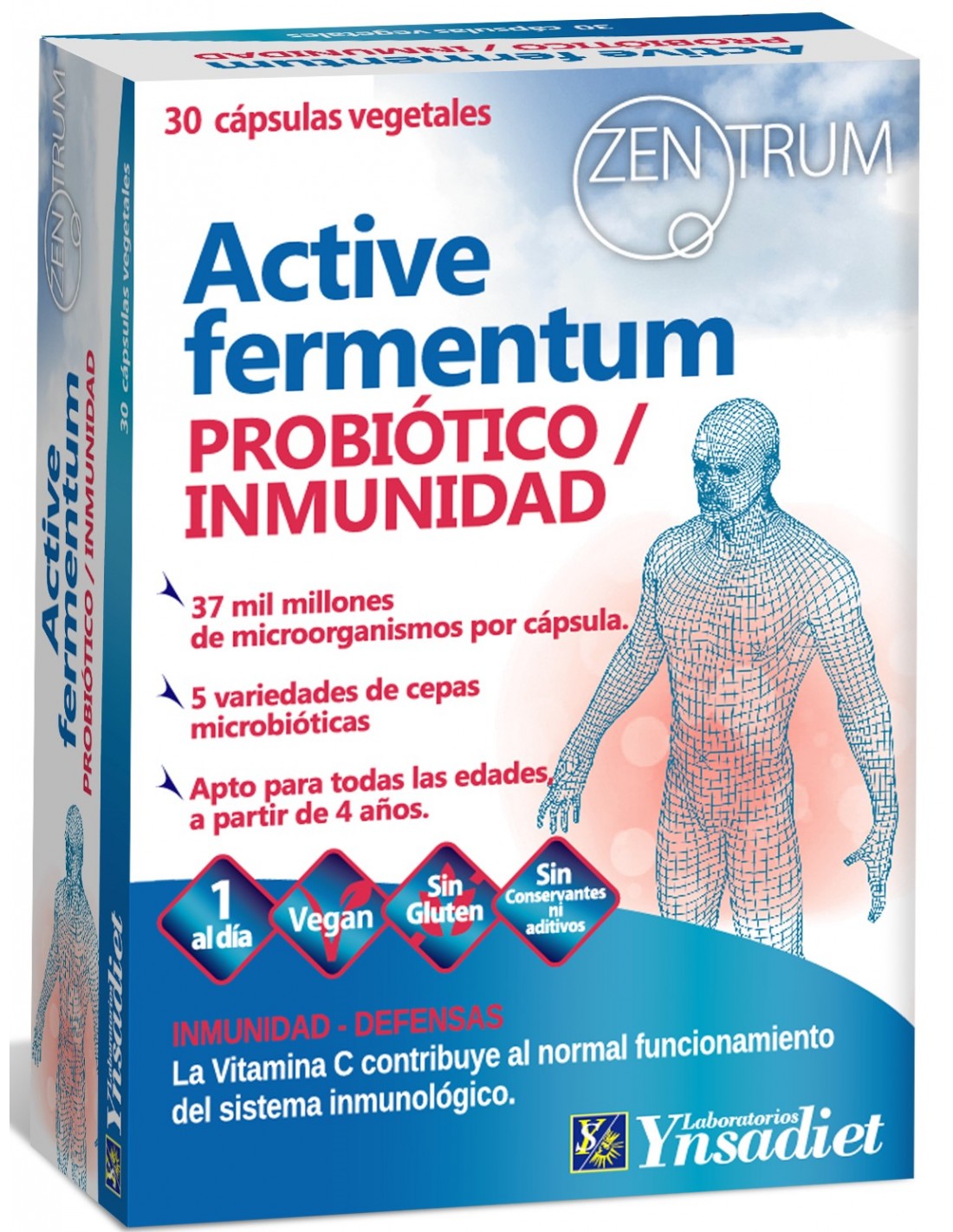 Por cápsula: Mezcla de microorganismos (Streptococcus thermophilus, Lactobacillus acidophilus, Bifidobacterium longum, Lactobacillus plantarum (tindalizado), Bifidobacterium lactis), Maltodextrina, Vitamina C (Ácido L-ascórbico), FOS (Fructooligosacáridos). Componentes de la cubierta de la cápsula: Hidroxipropilmetilcelulosa.
