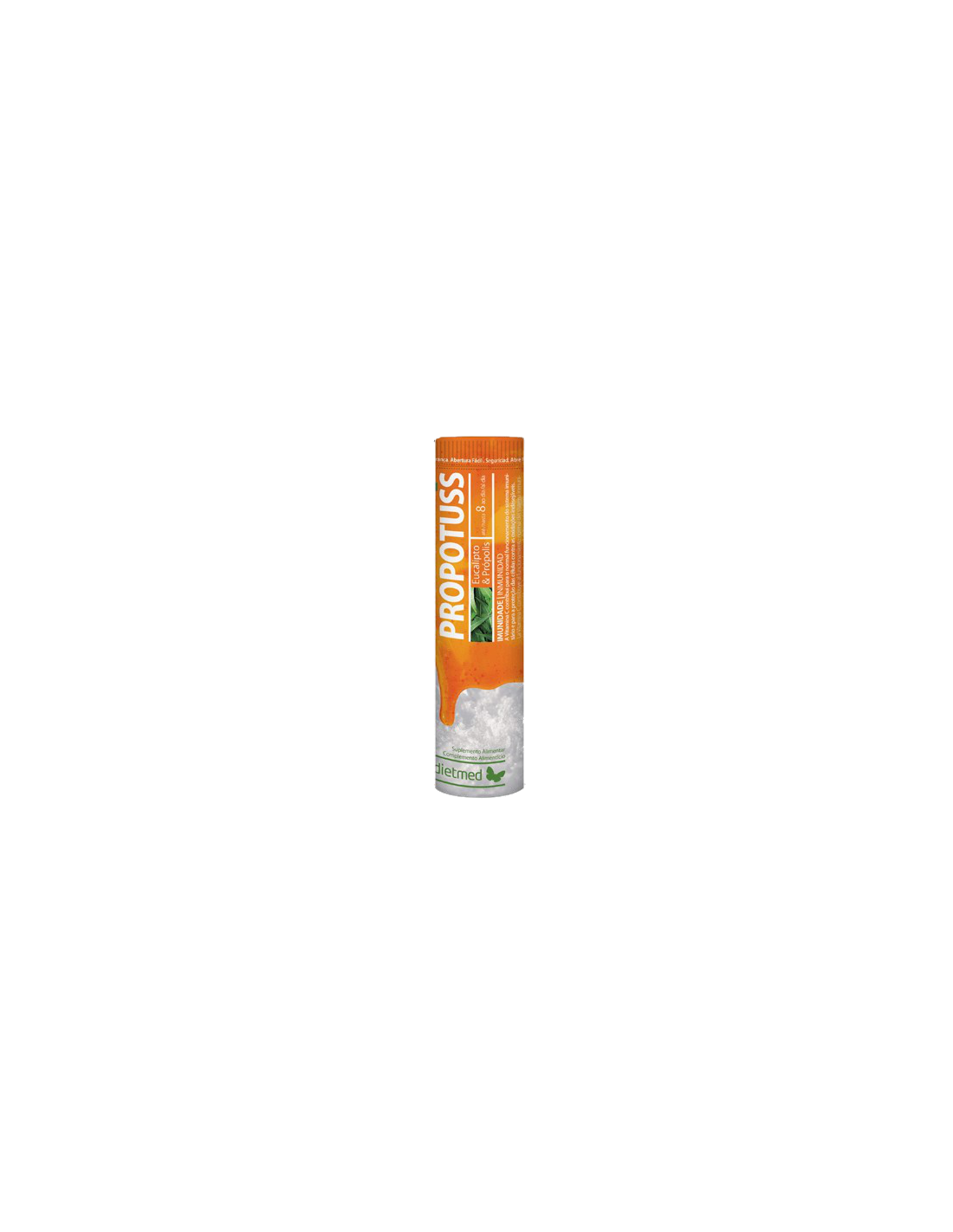 Sorbitol, extracto seco de própolis, agente de carga: magnesio estearato vegetal, aceite esencial de Eucalyptus globulus labill (Eucalipto; hojas), ácido L-ascórbico, antiaglomerante: dióxido de silicio, adulcorante: acesulfame potasio.