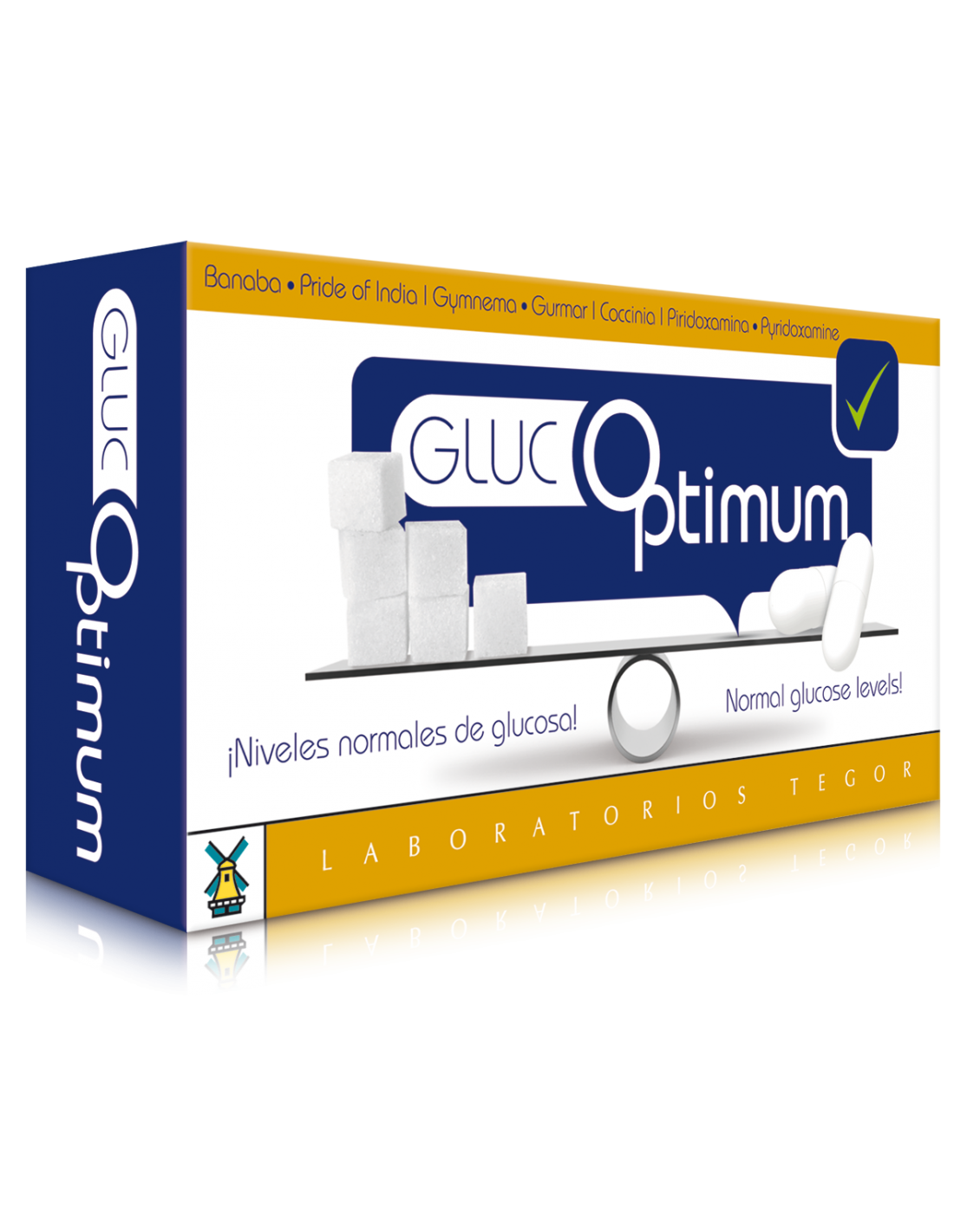 Faseolamina, 2000 U/g; Laferstroemia speciosa (extracto seco de banaba al 18% de ácido corosólico); Gymnema sylvestre (extracto seco estandarizado de gymnema al 75% de ácido gimnémico); Coccinia indica (extracto seco de coccinia); piridoxamina; picolinato de cromo; antiaglomerante (estearato de magnesio); agente de carga (celulosa microcristalina); envoltura (gelatina).