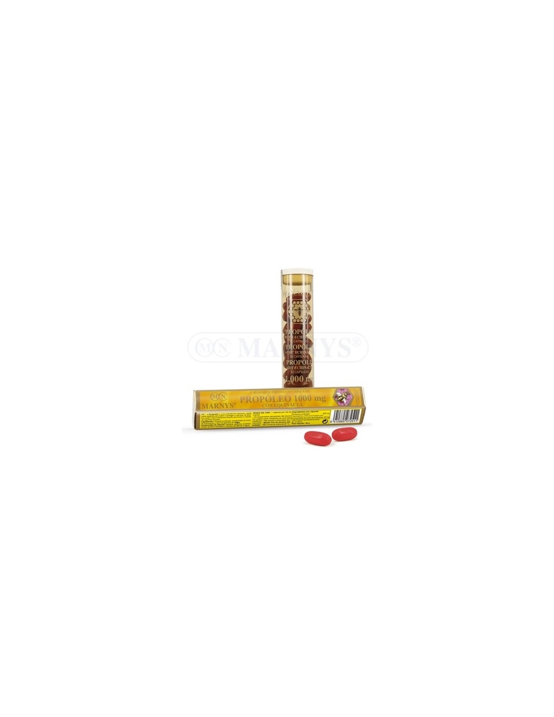 Propóleo purificado, concentrado de jugo de equinácea (Echinacea purpurea) y aceite de germen de trigo.