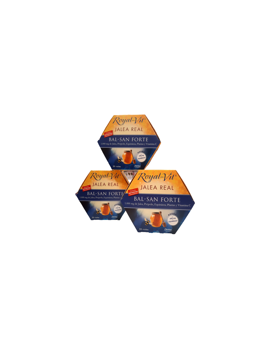 Royal Vit Jalea Real Bal San Forte Dietisa 20 viales, es unproducto natural que contiene jalea real fresca liofilizada, minerales y otros productos, en su composicion, para adultos, en situaciones de catarros o procesos gripales.