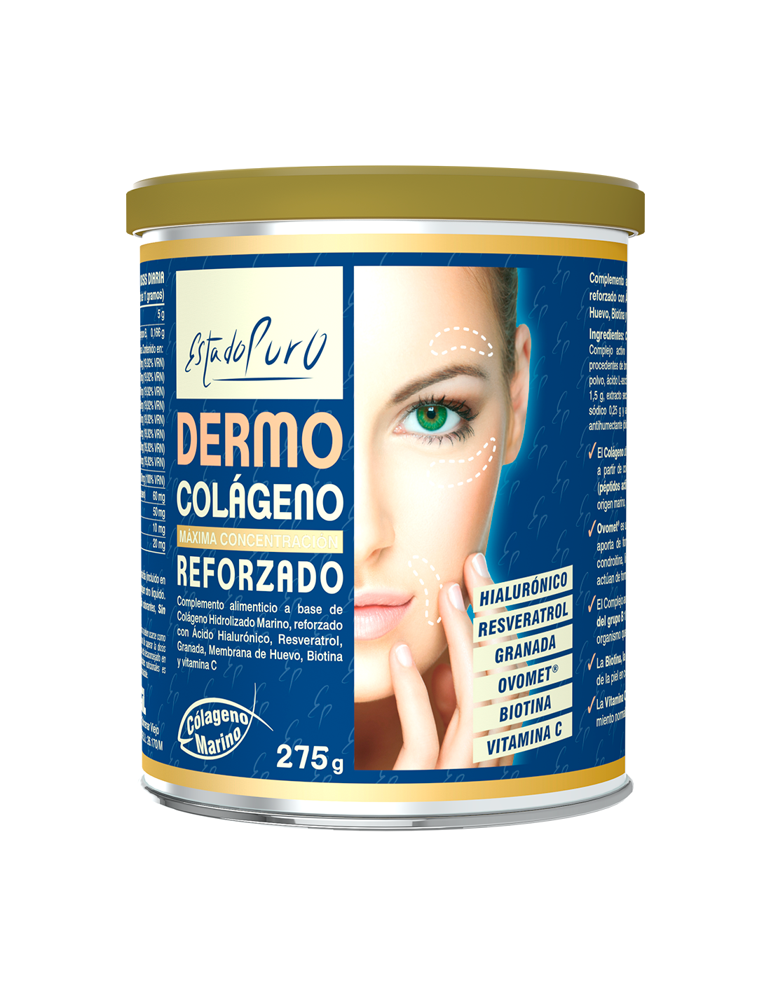 Colágeno Hidrolizado Marino (contiene pescado) 125 g, resveratrol al 50% 1 g, Complejo activo estandarizado de Vitaminas del grupo B 100% vegetales procedentes de brotes de Quinoa (Chenopodium quinoa) 4,15 g, zumo de piña en polvo, ácido L-ascórbico 2 g, Ovomet (extracto patentado de membrana de huevo) 1,5 g, extracto seco de piel de Granada (Punica granatum L.) 1,25 g, hilauronato sódico 0,25 g, aroma de piña, maltodextrina y antiaglomerante (dióxido de silicio).