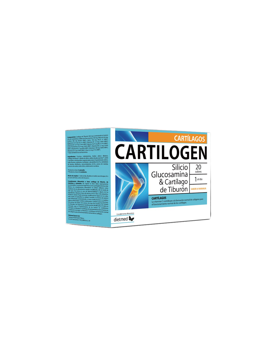 Cartílago de Tiburón 500 mg (conteniendo al menos 4% de Condroitina), Sulfato de Glucosamina 100 mg, Silicio 62,50 mg, Fósforo 585 mg (83,6% VRN*), Calcio 758 mg (94,75% VRN*), Magnesio 0,72 mg (0,2% VRN*), Vitamina B1 1,5 mg (136% VRN*), Vitamina B2 1,67 (119% VRN*), Niacina 18,75 mg NE (117% VRN*), Ácido Pantoténico 6,25 mg (104% VRN*), Vitamina B6 2,1 mg (150% VRN*), Vitamina B12 1 ng (40% VRN*), Vitamina C 80 mg (100% VRN*), Vitamina D3 5ng (100% VRN*), Flúor 2,5 mg (71% VRN*).