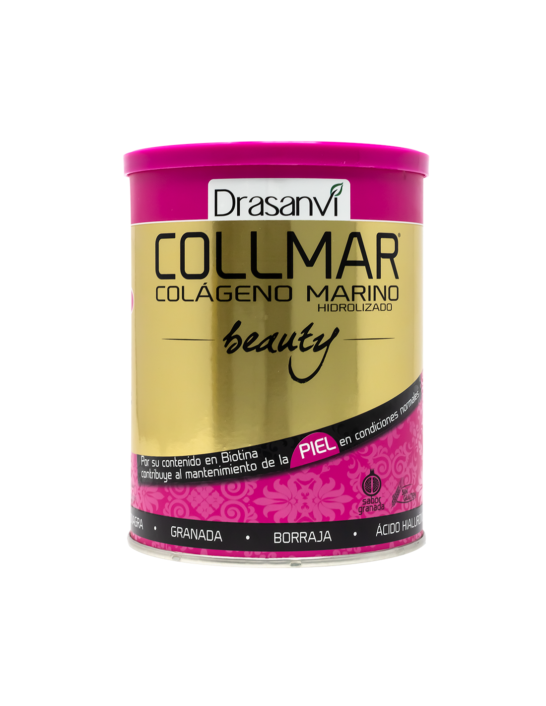 Colágeno Marino Hidrolizado Enzimáticamente (Tipo l. muy bajo peso molecular) 9.300mg, Aceite de Onagra microencapsulada (Oenothera biennis L.) 250mg, Zumo concentrado de Granada (Punica granatum L.) 200mg, Aceite de Borraja microencapsulada (Borago officinalis L.) 100mg, Vitamina C (Ácido ascórbico) 80mg, Remolacha (Beta vulgaris) 50mg, Aroma Granada (Aroma), Ácido Hialurónico 10mg, D-Biotina (Biotina) 0.1mg.