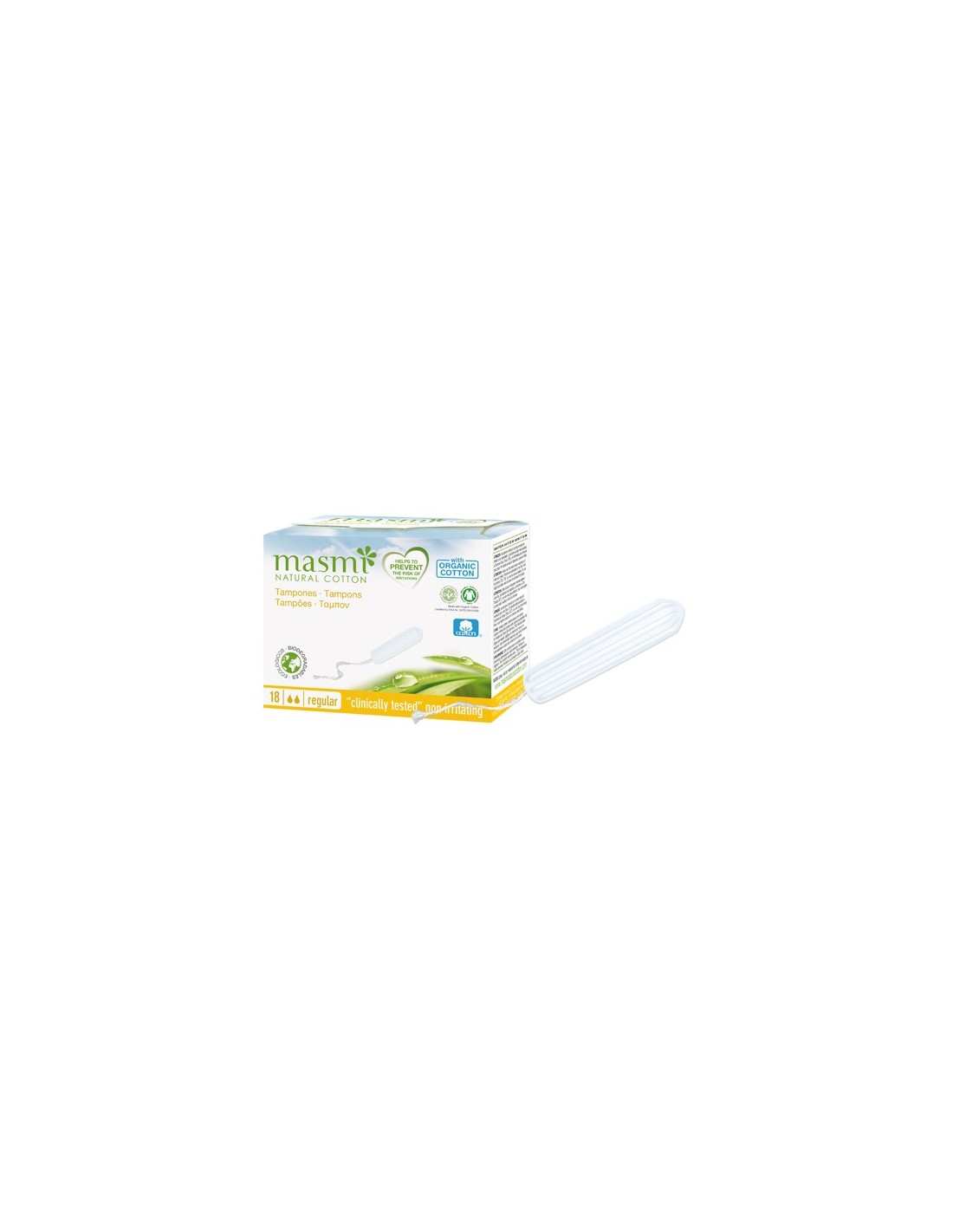 Tampón Regular 18 unidades de Masmi. Algodón purificado sin cloro. Producto vegano.