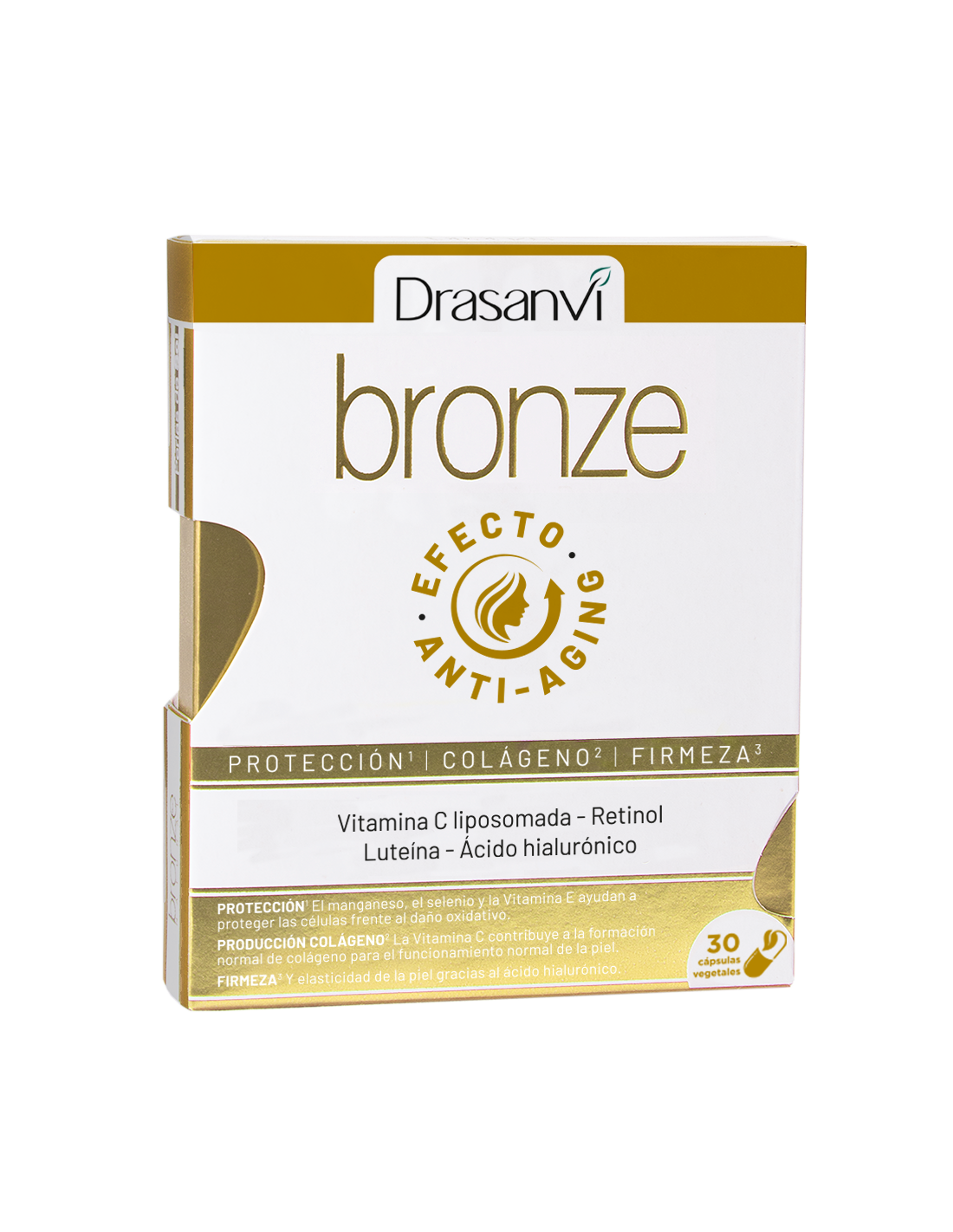 Ácido hialurónico 100 mg, agente de recubrimiento (hidroxipropilmetilcelulosa), L-tirosina 60 mg, extracto de rosa de la India (flores)(Tagetes erecta L) titulado 10% luteína y 10% zeaxantina) 60 mg, extracto seco de Blakeslea trispora (Blakeslea trispora) tiulado al 20% licopeno 40 mg, agente de carga (celulosa microcristalina), Vitamina C liposomada (ácido ascórbico, maltodextrina, glicerol, aceite de girasol y fosfolípidos) 18,5 mg, zumo concentrado de granada (fruto)(Punica granatum L.) 15 mg, gluconato de cobre (cobre 14%) 14,28 mg, Vitamina E (D-alpha tocoferol) 12 mg, Vitamina A (retinol) 6,6 mg, sulfato de manganeso (manganeso 32%) 6,25 mg, antiaglomerante (sal magnésica de ácido graso), Vitamina D3 (colecalciferol) 2 mg, selenito sódico (selenio 44%) 0,125 mg,