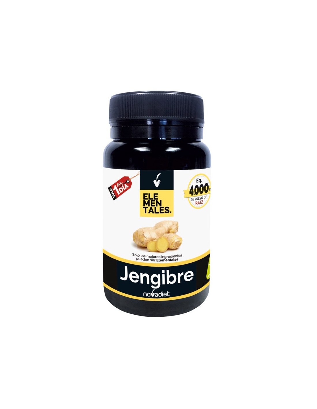 Jengibre (Zingiber officinale Rosc., rizoma, E.S., ratio 10:1, titulado a ≥ 5% en gingerol), Agente de carga (celulosa microcristalina), Antiaglomerantes (estearato de magnesio, dióxido de silicio). Cubierta: Agua, Hidroxipropilmetilcelulosa.