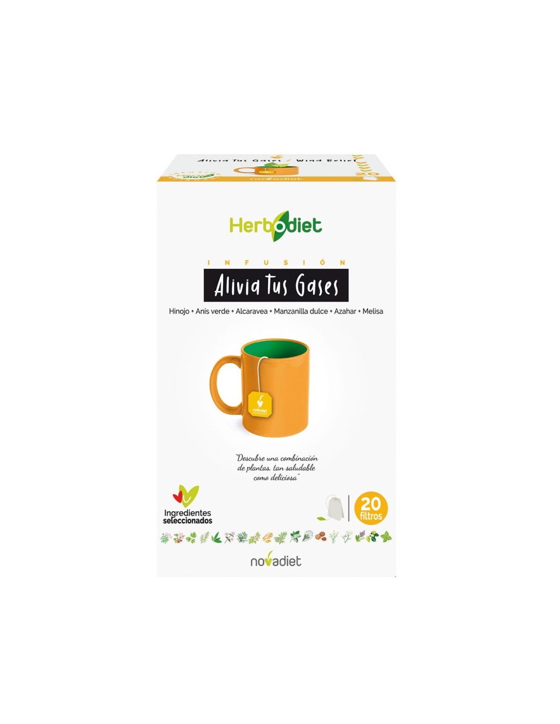Hinojo, frutos (50%); Anís verde, frutos (10%); Alcaravea, frutos (10%); Manzanilla dulce, cap floral (10%); Azahar, flor (10%); Melisa, hojas (10%).